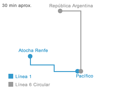 Desde la Estación de Atocha:![]() Dejar el bus en la parada Velázquez-Joaquín Costa. Subir por la calle de Veláquez hasta confluir con la calle Pablo Aranda (a la izquierda). Al final se encuentra la calle de Serrano y girar de nuevo a la izquierda. Desde el aeropuerto: Tomar la línea Exprés Aeropuerto hasta parada O`Donnel. Luego, cambie a la Línea 6 de metro dirección República Argentina. Al salir del metro elija la salida a la Calle de Juan de la Cierva. Al finalizar esta calle se encontrará con la Calle de Serrano, gire a la izquierda hasta localizar el número 117. Desde la Estación Sur (Méndez Álvaro): Se recomienda tomar el metro. |